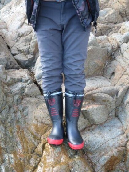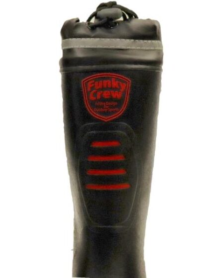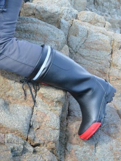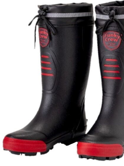 ・履き口のカバーをヒモで引けば、水や泥が入りにくい設計
